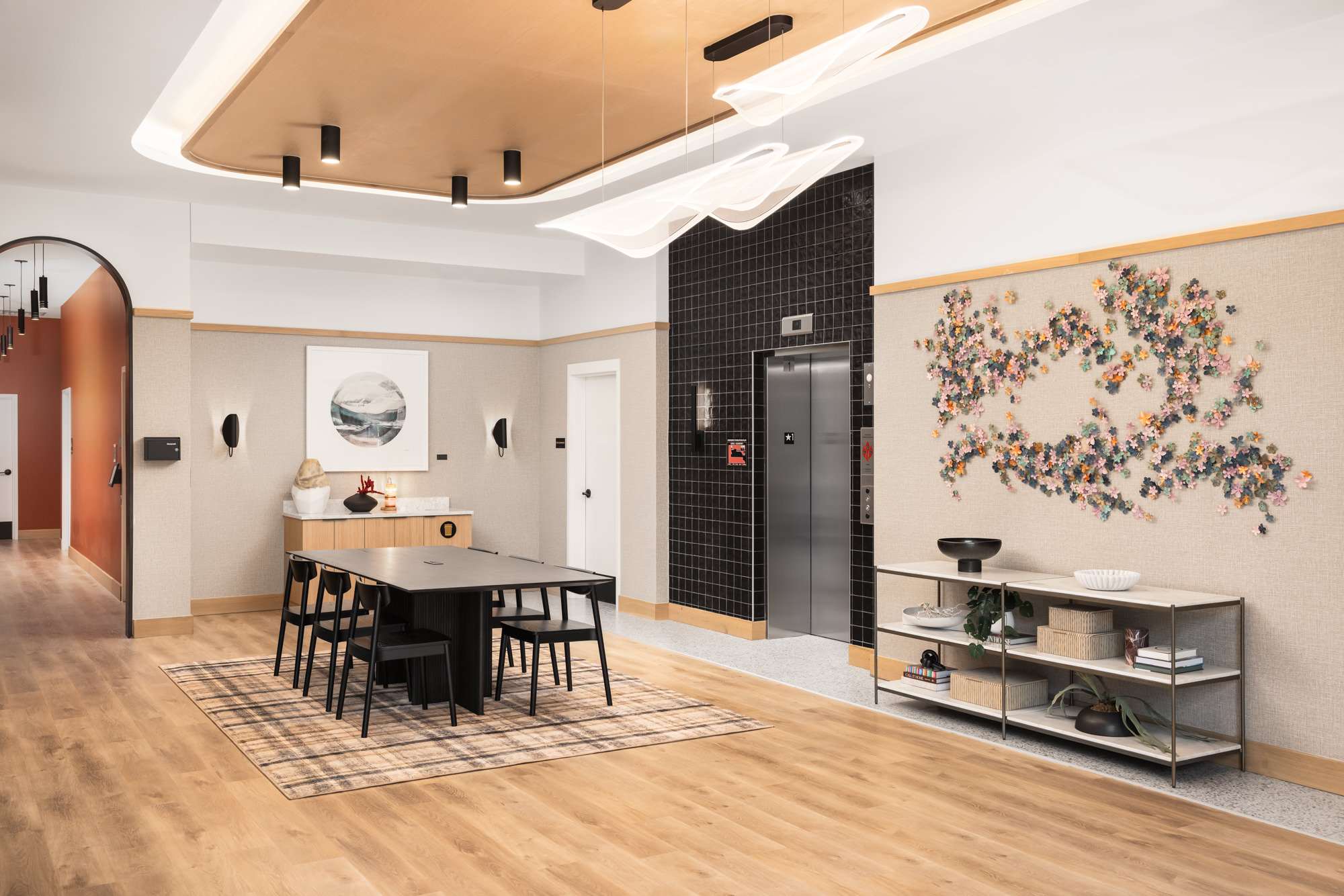 Refined social settings designed for gathering and resident connection.